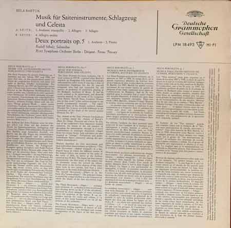Béla Bartók – RIAS Symphonie-Orchester Berlin, Ferenc Fricsay – Musik Für Saiteninstrumente, Schlagzeug Und Celesta ·  Deux Portraits Op. 5 Vinyl LP