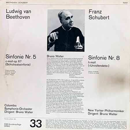 Bruno Walter, Columbia Symphony Orchestra, New Yorker Philharmoniker – «Beethoven: “Schicksalssinfonie” – Sinfonie Nr. 5 C-moll/ Schubert: “Unvollendete” Sinfonie Nr. 8 H-moll Vinyl LP