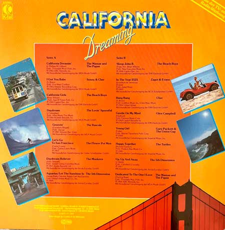 На стороні A платівки сяють такі сингли, як The Mamas And The Papas – California Dreamin’ (1965), що зачаровує гармоніями, та Sonny & Cher – I Got You Babe (1965), сповнений романтики. The Beach Boys – California Girls (1965) і The Monkees – Daydream Believer (1967) додають сонячного настрою, а The 5th Dimension – Aquarius / Let The Sunshine In (1969) заряджає енергією миру.