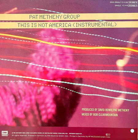 David Bowie / Pat Metheny Group – This Is Not America (Theme From The Original Motion Picture, The Falcon And The Snowman) Maxi Single Vinyl, 45 RPM