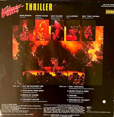 У золоті часи хард-року, коли гітари ревіли, як дияволи на волі, швейцарські рокери Killer випустили Thriller – альбом, що став справжнім вибухом на лейблі Bellaphon. Ця вінілова платівка 1982 року не просто запис, а адреналіновий коктейль, який переносить тебе в еру, де кожен риф – це виклик долі. Якщо ти шукаєш Killer Thriller vinyl, то готуйся: це не колекційний раритет за $10-20, а портал у світ, де музика пульсує в жилах, змушуючи забути про буденність і просто рокнути!