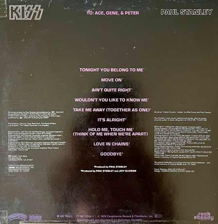 Серед ключових треків – «Tonight You Belong to Me», романтичний і мелодійний хіт, що став синглом альбому, «Hold Me, Touch Me (Think of Me When We’re Apart)», який підкреслює ліричну сторону Стенлі, та «Move On», сповнений рок-н-рольного драйву. Ці композиції передають фірмову харизму Kiss, але з більш особистим і чуттєвим підходом. Альбом досяг 40-го місця в Billboard 200, завоювавши серця фанатів.