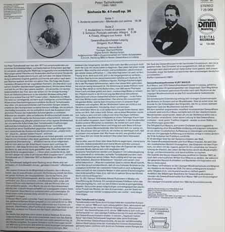 Kurt Masur Dirigiert Tschaikowski, Gewandhausorchester Leipzig – Sinfonie Nr. 4 F-moll Op. 36 Vinyl LP