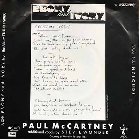 Маккартні та Вандер почали запис «Ebony and Ivory» у Монтсерраті на початку 1981 року. Цей сингл став першим випадком, коли Маккартні випустив дует з іншим великим виконавцем і передбачив його співпрацю з Майклом Джексоном у 1980-х роках. Трек також є на компіляціях McCartney All the Best! (1987) і Pure McCartney (2016), а також на дводисковій версії Wonder’s The Definitive Collection (2002). У 2013 році Billboard поставив його на 69-е місце серед найпопулярніших хітів усіх часів у чартах Billboard Hot 100.