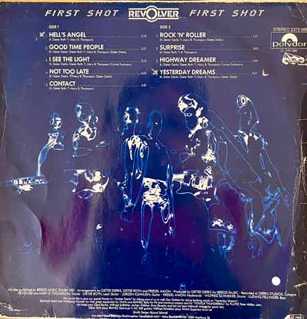 З перших секунд «Hell’s Angel» ви відчуваєте, як Revolver стріляє без промахів: потужний риф, хрипкий вокал Хорхе Гарсіа й барабани, що б’ють прямо в груди. Далі «Good Time People» і «I See The Light» додають мелодійності, але не втрачають драйву, а епічна «Not Too Late» і містична «Contact» демонструють, наскільки гурт вміє балансувати між швидкістю та атмосферою. На другій стороні «Rock ’N’ Roller» і «Surprise» розривають динаміками, «Highway Dreamer» мчить на повній швидкості, а фінальна шестихвилинна «Yesterday Dreams» – справжній гімн, що залишає мурашки й бажання перевернути платівку знову.