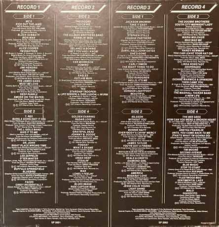 Переходячи до найяскравіших моментів, бокс-сет – це суцільний потік шедеврів на чотирьох платівках. Наприклад, тут є легендарні треки на кшталт “Smoke On The Water” Deep Purple, “Iron Man” Black Sabbath, “School’s Out” Alice Cooper, “Stairway to Heaven” (або інші Zeppelin-хіти), “Riders on the Storm” The Doors, “Truckin'” Grateful Dead, “Fire & Rain” James Taylor, “How Can You Mend a Broken Heart” Bee Gees та багато інших. Більше того, ключові хіти від The Marshall Tucker Band (“A New Life”), Roberta Flack & Donny Hathaway (“Where Is The Love”), Linda Ronstadt, Golden Earring та інших створюють різноманітну, але гармонійну подорож: від важкого року та прогресиву до соул-року та фолк-року. Ці треки – справжні оригінали, що підкорювали чарти та визначали епоху, роблячи бокс-сет ідеальним для вечірок, ностальгії чи глибокого прослуховування.