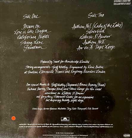 Сингли Love Is Like Oxygen і California Nights – серце альбому. Love Is Like Oxygen (№8 у США, №9 у Великобританії) зачаровує майже семихвилинною альбомною версією з гітарним соло та впливом ELO, тоді як California Nights (№76 у США) додає поп-рокового шарму. Треки Fountain і Silverbird вражають мелодійністю, Anthem No. I (Lady of the Lake) додає містики, а Air on ‘A’ Tape Loop дивує космічним вайбом, що нагадує Pink Floyd.