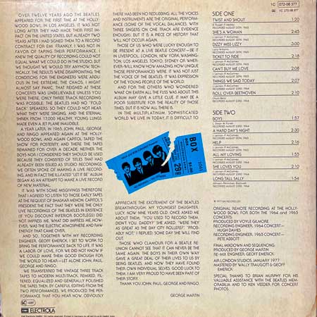 У запис увійшли виступи гурту 1964 і 1965 років на відомій сцені Hollywood Bowl у Лос-Анджелесі. Завдяки чудовій роботі звукорежисерів, зокрема Джорджа Мартіна, вдалося зберегти ту неповторну атмосферу — радість, захват і драйв, які так сильно любили фанати Beatles по всьому світу.
