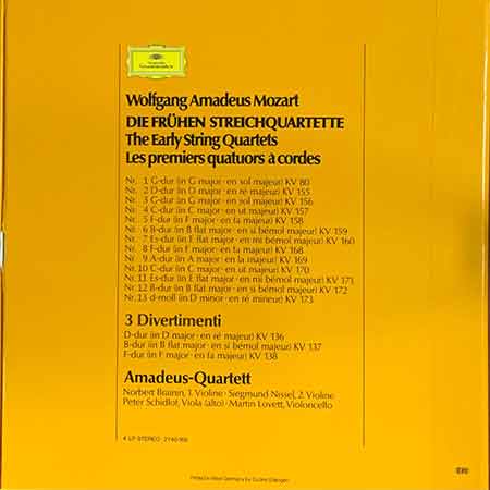 Wolfgang Amadeus Mozart, Amadeus-Quartett – Die Frühen Streichquartette / The Early Strings Quartets / Les Premiers Quatuors à Cordes Vinyl 4LP-Box